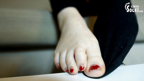 A POV video with close up shots on Anna's pretty feet, her worn socks with a big hole and her big toe sticking out, with a little bit of tickling and a lot of Anna's cuteness as you're touching her feet and she's teasing you and playing with them. At first she just sits on the sofa, quietly reading with her feet on the table and her socks with a hole on. She playing with her feet little bit and then you start to be all frisky and into her feet. You want to take those socks off and see her bare feet. But she's fighting you back with her feet. So tickling comes to play here, to make her submit and give you her bare feet. Anna is laughing, she's cute and smiley and she moves her feet around, wiggle her toes and that just makes you want her feet even more and more. She can be very cute and you know that in the end you'll get her feet the way you want to. She'll surely submit to you and she will actually enjoy it too.