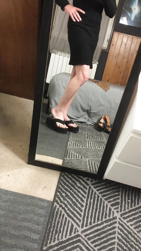 Andreina shows you one by one her best very high heels exciting in front of the mirror with a tight dress and very long legs