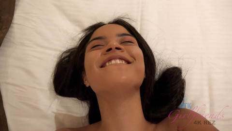 Maya is ready to have a lot of fun since she missed you so much! She smokes a cigarette and jumps in the tub. You enjoy Maya's stories as she relaxes in the bubbles and later while she applies makeup. So she's all dolled up now but since you started to tease her pussy on the couch, Maya got really horny for you. After you follow her back upstairs she pulls off your jeans. Maya's pretty feet and warm mouth massage your cock before you insert it into her dark pussy. You fuck her doggy style, and when you're ready to release, Maya gets on her back so your cum can shoot straight up into her pussy.