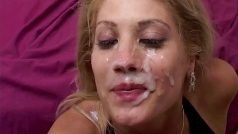 Tato nadržená děvka si opravdu dává čas na make-up, musí vypadat krásně, když její dva noví přátelé přijíždějí na trojku. A tak šťastná kráska si užívá tyto dva tvrdé ptáky v puse a kundičce. Kluci říkají děkuji a střelte jí plnou nálož do obličeje.
