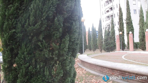 Beautiful Christelle showing nylon feet outdoors in solo action.