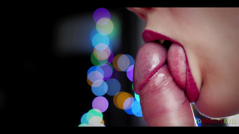 Gently licking the glans and frenulum in close-up