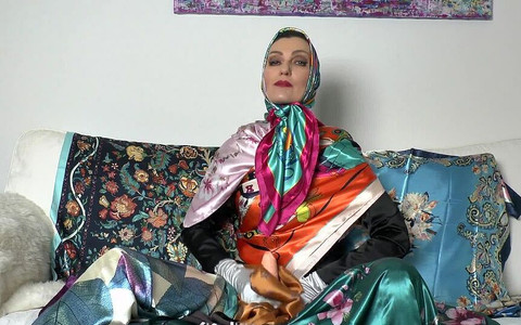 Get ready for the clip! I want you to wear satin headscarves in multiple layers, at least a cloth mask over your nose, and scarves around your body. Line the space with towels and if you have them, you can also wear satin gloves. Only then can you turn on the clip. As you can see, I'm dressed entirely in satin scarves today. Satin headscarf, shawls, satin blazer, satin gloves, satin panties, and shiny tights. I'll put a dildo cock in my panties and show you how you should make your cock horny now. I lead the way and you follow suit! The tail is stiffened with very gentle touches with a satin cloth! The cock is gently waxed with a satin glove hand, etc. You do everything I show you! Finally, you should have a really nasty ruined orgasm on my command! You should be really frustrated!