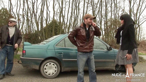 While this old pervert watches through the rear view mirror, this horny bitch is sucking on cock in the backseat of the car ! Wanting a piece of the action, the old bastard pulls the car over , lays her out on the hood and the two pricks take turns fucking her hot ass,on the side of the road . No age limits here !