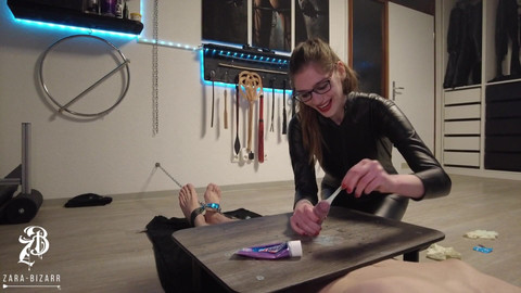 Toothpaste is not only good for the teeth, it also makes your cock feel great, especially the glans. So I was so nice to my slave and rubbed his sex with my freshly scented toothpaste and then blew until all the cream came out. Would you also like to be spoiled by me?