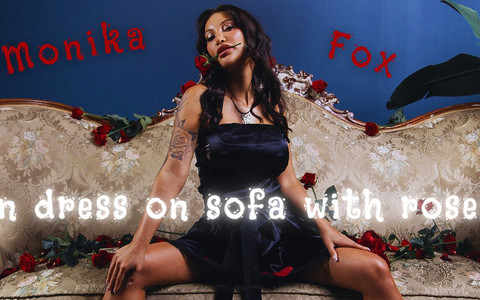 Krásná Monika Fox v černých šatech na pohovce s růžemi! 09:06