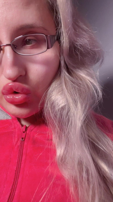 Bimbo red lipgloss captivated. Webcam Session talk with bimbo girl. Red lips and red lipgloss worship.