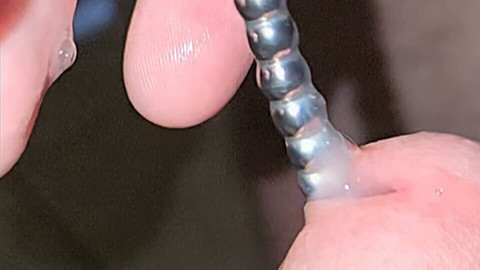 Cumming around a sounding chain just to mix things up! As always, you can enjoy the show in slow motion and close-up to the action! Watch as the cum-coated chain slides out of my throbbing cock!