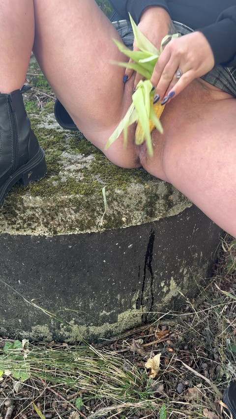 Anna was so horny again ...., so a corn cob had to serve