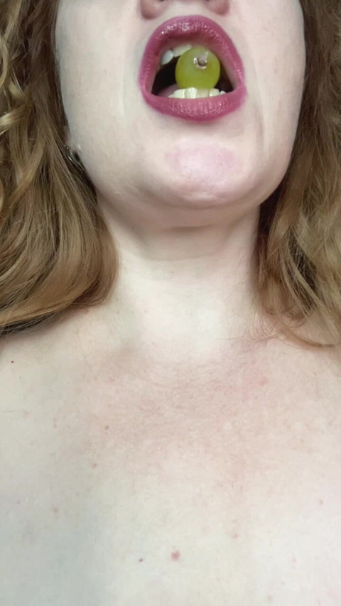 I once made a bet that I could swallow whole pieces of fruit. Because I have a deep enough throat, a big mouth, and I manage to swallow tomatoes, grapes, and tangerines without chewing. A little juice on my huge breasts wouldn't hurt lol