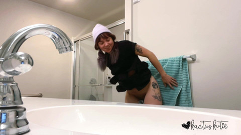 after a long drive to my friend's house, i realized that i was desperate to pee so i went into the bathroom but the toilet wasn't working! i considered my options, maybe i could pee in the bathtub? i had to decide quickly because my bladder was bursting! finally, i couldn't hold it in anymore so i dropped my pants and thong, hopped on the sink, and let it all out! i moaned with pleasure as i relieved myself. it had been such a long drive and i had been hydrating so much that i just kept peeing and peeing! i switched positions a few times so you can see my pee trickle and spray out of me from all sides! when i was finally done i hopped off the sink and dried myself up with the towel before washing my hands.