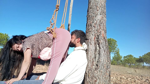 Prdím mu do obličeje, zatímco ji drtím mezi můj zadek a strom