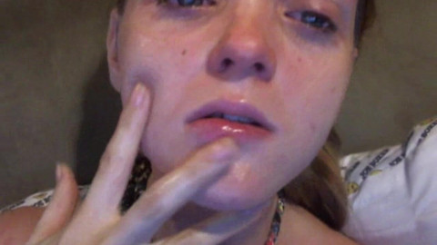Gagging on her fingers shoving them into her mouth in and out over and over again gagging and gagging, spit forming, scooping the spit up and rubbing it all over her face.