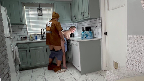 Delivered a case of water to housewife Misty Rein on a hot day in Florida and she got so excited with the package that she got all wet once opened it and decided that she also wanted to enjoy the delivery driver as well!