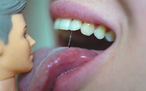 One little guy was careless and got caught by a giantess! She looks shocking - her big mouth is so dangerous, but is she dangerous? What will she do with him? Will she be careful too? Attention - extremely close up, I can swallow you...