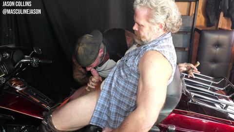 Cain Marko is by far one of my favorite men to shoot with because his ass opens right up and it's not tight as all. It feels absolutely incredible! I also love what a big manly man he is but yet passionate at the same time. This time we decided to shoot on one of my Harleys while I smoked a cigar and it was hot as fuck! Includes kissing, oral going both directions, and every position possible on a motorcycle.