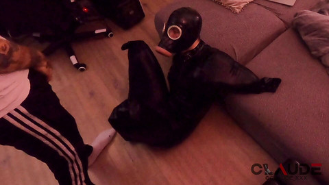 My sub twink is getting dome piss to drink and getting throatfucked in the modified flashlight gas mask.