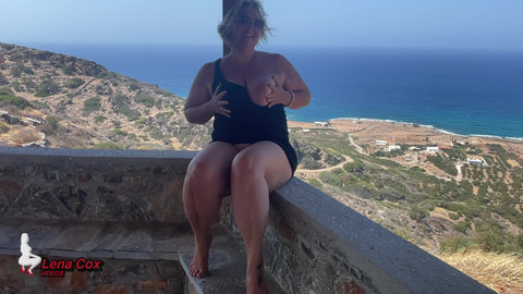 Sitting on a seaside balcony in my black dress, with no panties on, I can’t resist touching myself. My hands roam over my breasts and slip between my legs, my heart racing from the thrill of being in public. I bring myself to a quick, intense orgasm, biting my lip to stay quiet as I soak in the view and the pleasure. Satisfied and flushed, I pull my dress back down, cover my breasts, and try to act innocent… even though I know exactly what I just did.
