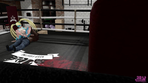 R. Mika uses her feet to wrestle with a black cock during a training session in the ring.