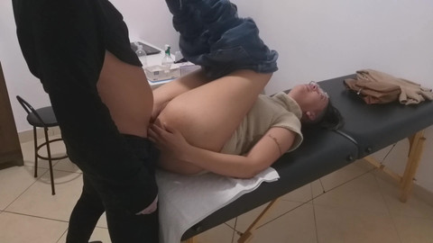 Woman goes to the urologist to do an anal exam and he who sends his fingers in her anus is excited and ends up putting his cock out and then eating the patient's pussy and ass until he cums on top of her pussy.