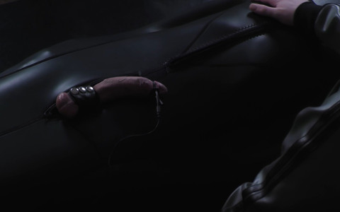 For this rubber gimp it will be a long night. Fixed in a bag, cut off from the outside world with a gas mask and completely immobile he feels how his slave cock is slowly pulled out. His balls are squeezed hard and fixed with a ball stretcher. He feels the cold electrodes on his dick and suddenly the electricity flows through his manhood. The intensity is increased further while his master controls his breathing. When his master cum on the mask he cannot resist and will spend the night immobilized on the table while the electricity cooks his cock without mercy.