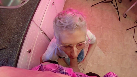 Sexy stepmom wants to play with her femboy. She wants to enjoy his dick and do it in the most perverted way possible! She waits until he wants to piss and starts flirting with him! She kneels in front of him, opens her mouth, and takes a hot shower from his piss right on her face and mouth! A hot stream of piss rushes into her face and then she puts her mouth on his dick! She sucks his dick, sticks her finger up his ass, and gives him a wet blowjob until he's on the verge of orgasm! She opens her mouth and takes all the cum in her mouth and on her face! Enjoy amazing moments with this crazy kinky blonde couple!