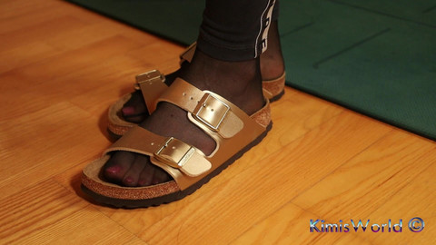 Get ready for an up-close nylon experience! Watch as her sheer black pantyhose highlight every curve of her feet – from stretched arches to wrinkled soles and teasing toe movements. Whether posing on the mat or slipping into golden sandals, the focus is all on her nylon-covered feet. Pure, detailed, and irresistibly sensual.