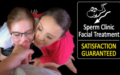 Y'all know how our Sperm Clinic works, in this 3rd edition, I'm the manager of the clinic, one of our clients (Lacey Bloom) came by my office to file a complaint. She wasn't too happy with the previous treatment she got, unfortunately. She said that the man who gave her the cum couldn't give her a good facial. Since she's a good client of ours, we're going to give her a free treatment from a new guy that has started working here. So I call the new guy in my office, she goes straight on her knees, pulls down his pants, and starts sucking him. IN MY office! she's not going to stop until she gets her treatment and since she's a very good client of our clinic, I've decided to help her and join her. This would really turn the new guy on and build a bigger load for her treatment. We've added lots of dirty talk, lots of blowjobs, deepthroat, balls licking and even a little titfucking! she received a big load on her face and glasses !