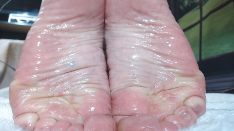 My feet are so dry, as seen in recent videos. Now I have them toe-pointing back view drizzling oil down my heels. Hands-free sensual foot-to-foot caressing to smooth the oil all over. Dripping wet and super closeup for your utmost enjoyment. Watch my wrinkles and creases sip on oil and brighten up and come back to life. hey, feel so lovely now.