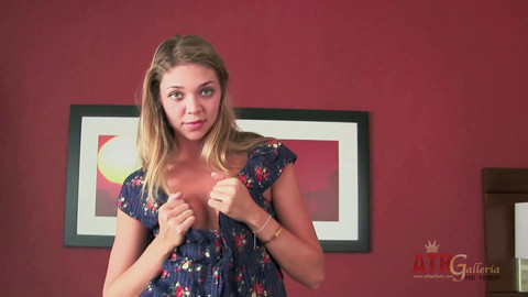 Jessie Andrews interviews, strips and masturbates, her cute little tits and pussy get exposed.