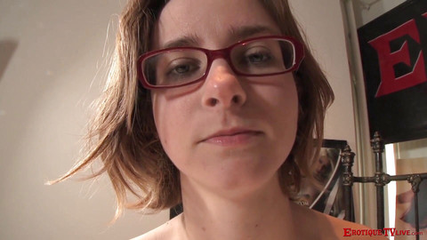 Beautiful teen with glasses takes care of Eric's big dong