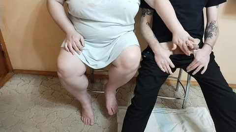 Manuelle stimulation meines schwanzes von einer fetten MILF und sperma 08:53