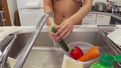 Hanasaki Hime, with her black hair, cute face, adorable looks, and stunning I-cup breasts! Her huge, luscious, beautiful tits are her source of healing. She's got a lot going on, and she's not afraid to show it! Her secret erotic live stream was discovered by an acquaintance in no time… Two complete films from 'The Naked Housewife' closely document the naked private life of a full-time housewife!