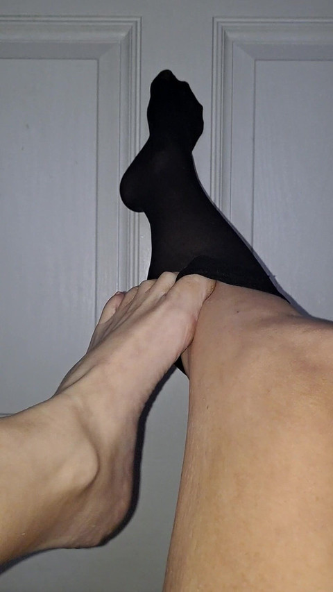 Sheer, knee high black nylons look good encasing my legs. Even better is how flexible and useful my toes are I love to seductively peel them off my legs and feet.All without my hands Then of course on my back