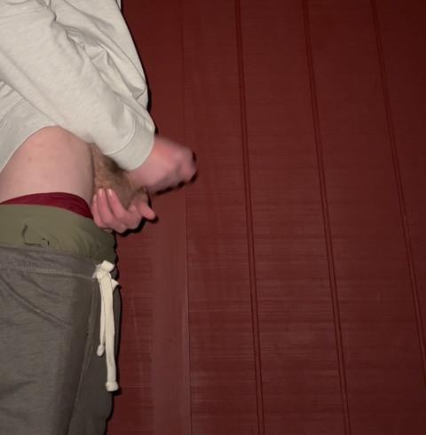 Hairy 26 year old cums on shed next to woods