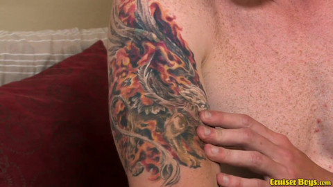 Watch this horny meat head fucko with tattoos jerk his fuckin gerk off! He whacks his gack until his dick head spurts semen all over the place!