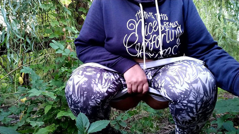 Lush MILF golden shower solo in nature
