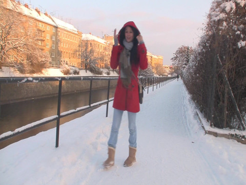 Now you can join our big breasted brunette on a nice walk with lots of smoking!