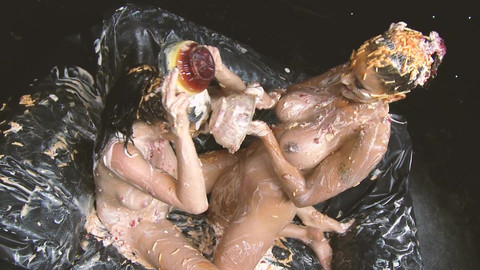 Des lesbiennes baveuses, scène 4 : deux lesbiennes à forte poitrine couvertes de gâteau se bouffent la chatte 19:46
