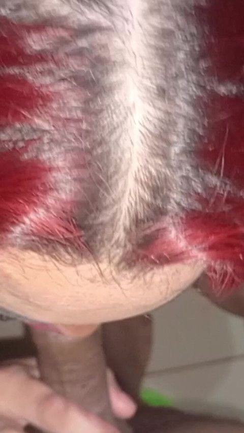 Beautiful trans woman sucking cock in close-up, deep throat