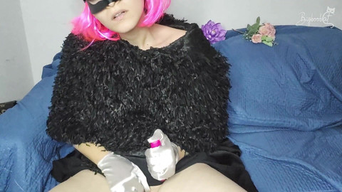 A masked marvel: my big natural tits and solo pleasure are yours to see. I'm a vision of eroticism, my body moving with grace as I masturbate. Let me mesmerize you with my tits and masked face.