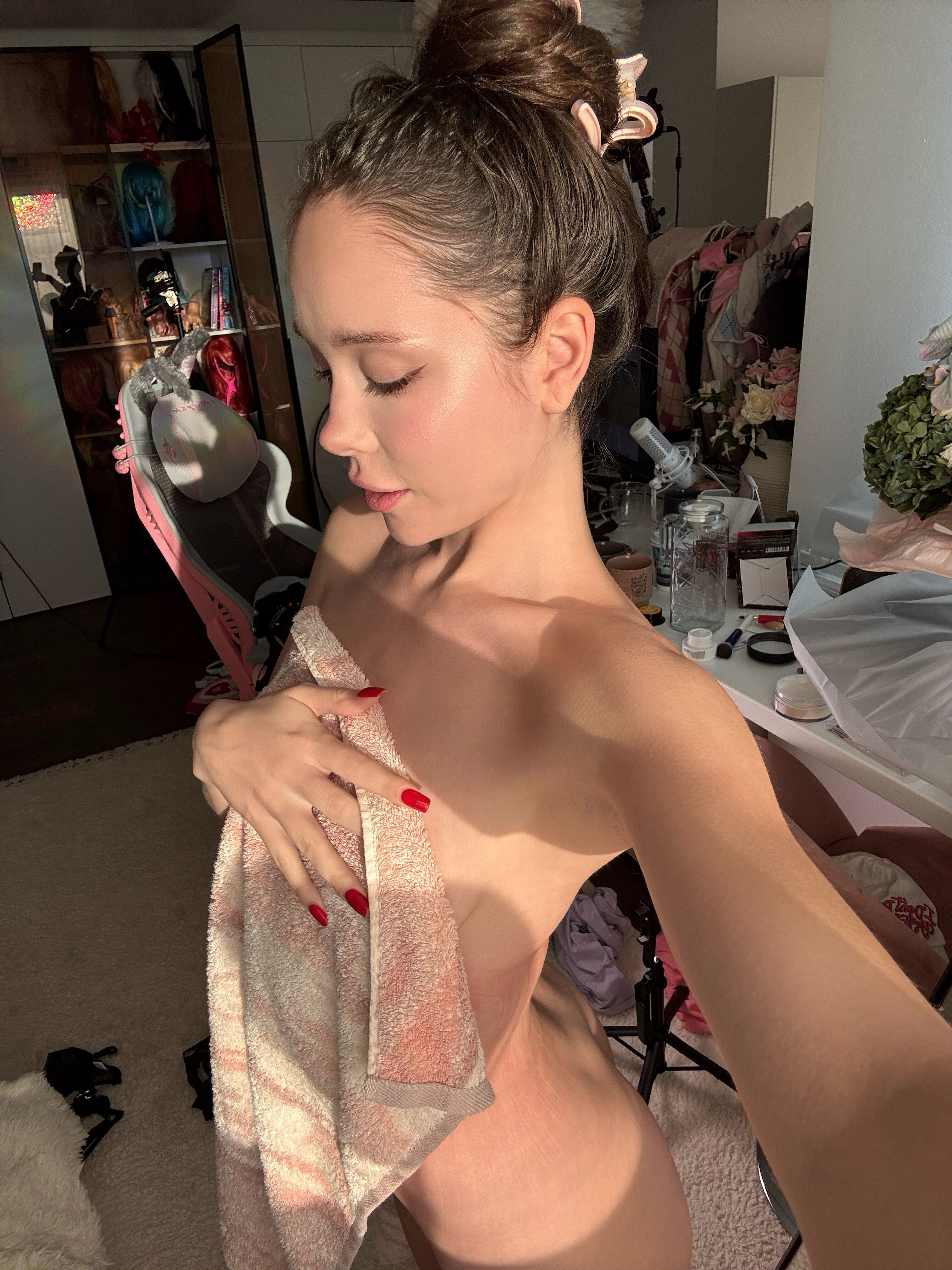 In this video, there are 6 private streams with Kate Kuray at once. Home masturbation on webcam, expressive emotions and of course wet. The butt plug is a stunning addition to an excellent ass.