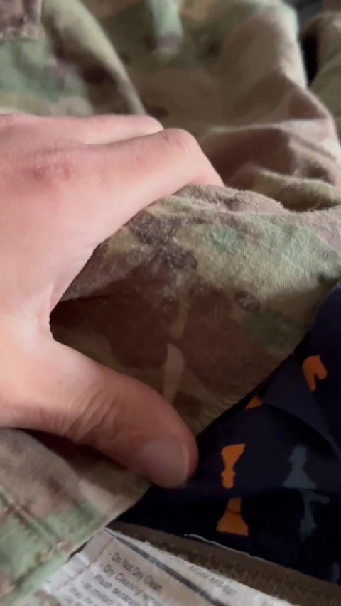 horny army guy jerking off in uniform shoots in his OCPs and boxer shorts