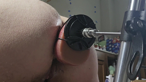 6.5 inch long, 2.15 inch diameter dildo hooked up to a fuck machine fucks my asshole, until it gapes and starts to prolapse!