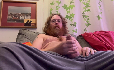 Jacking my dick until I shoot cum onto my grey sweatpants.