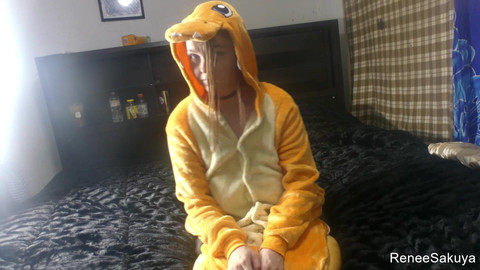 Renee Sakuya in a charizard suit dancing and stripping, silent film, sound was edited out due to music