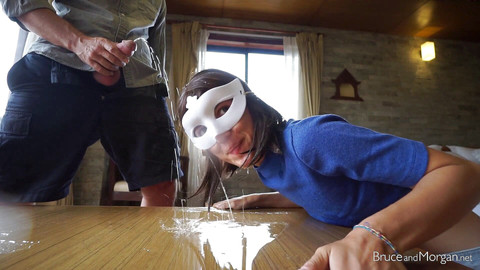 We often incorporate suggestions from fans into our videos, but for this one we went a step further: within 5 minutes of reading it we had the camera out and were filming! The request was simple: "Morgan could you lick piss from a table?". Yes I could! I think it turned out great - you can really feel the spontaneity of the act... I love how Bruce's pee bounces off my head and explodes all over the place (including the lens)! Keep those suggestions coming, who knows... we might do yours next ;) - Morgan xx