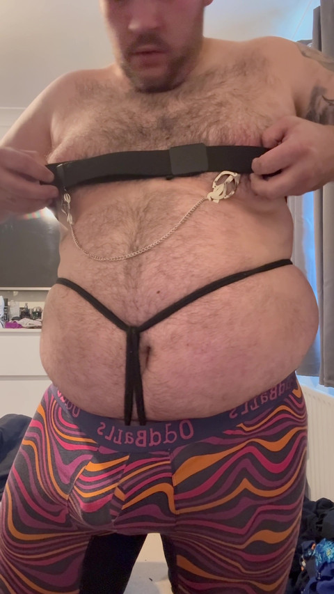 In this video I have nipple clamps already applied then start tying my cock and balls using shoe laces rope and a dressing gown belt I then changed the nipple claps to some big plastic DIY clamps whilst my cock and balls is still tied then put all my clothes back on ready to head to the shop