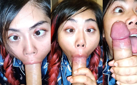 Cute AHEGAO girl POV Blowjob, she finishes it all over her face.
