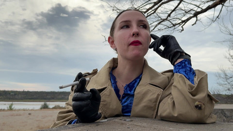 In POV, you watch me smoke slowly, seductively, taking deep drags and exhaling with a teasing swirl, lipstick marks staining the filter. I spit rivers of saliva onto the concrete, each glob glistening as I taunt you with my beauty. My leather gloves creak, adding charm as I tease you with their sleek grip, enhancing my allure. Close-up shots capture every detail—my smoky lips, the wet streaks, my sly grin. A spit fetish thrill—subscribe for more!